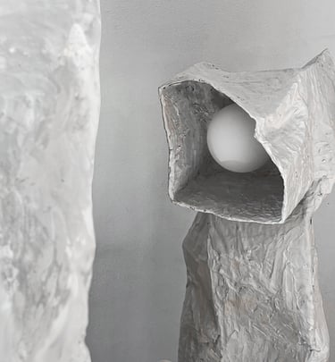 Designed to blend modern minimalism with artisanal charm, the Luma table lamp serves as both functional light source and a striking sculptural accent.